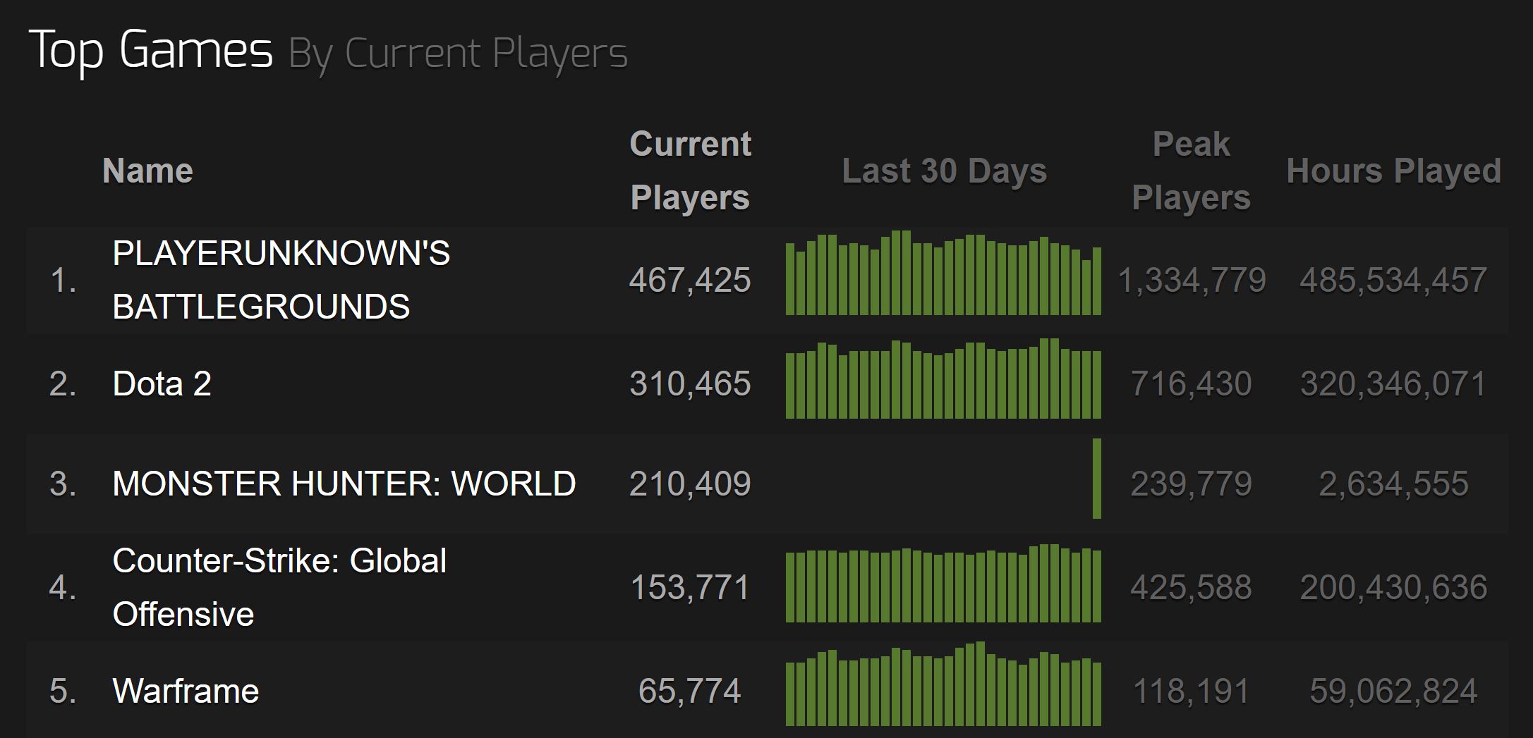 이러한 인기는 스팀으로 출시된 버전으로도 그대로 이어졌다. 출시 첫날 최고 동시접속자 수가 24만 명을 넘어선 것이다. 플레이어언노운스 배틀그라운드, 도타2, 카운터스트라이크: 글로벌 오펜시브 등 스팀 인기 '터줏대감'의 뒤를 이어 단숨에 동시접속자 수 4위를 차지했다는 점이 눈길을 끈다.