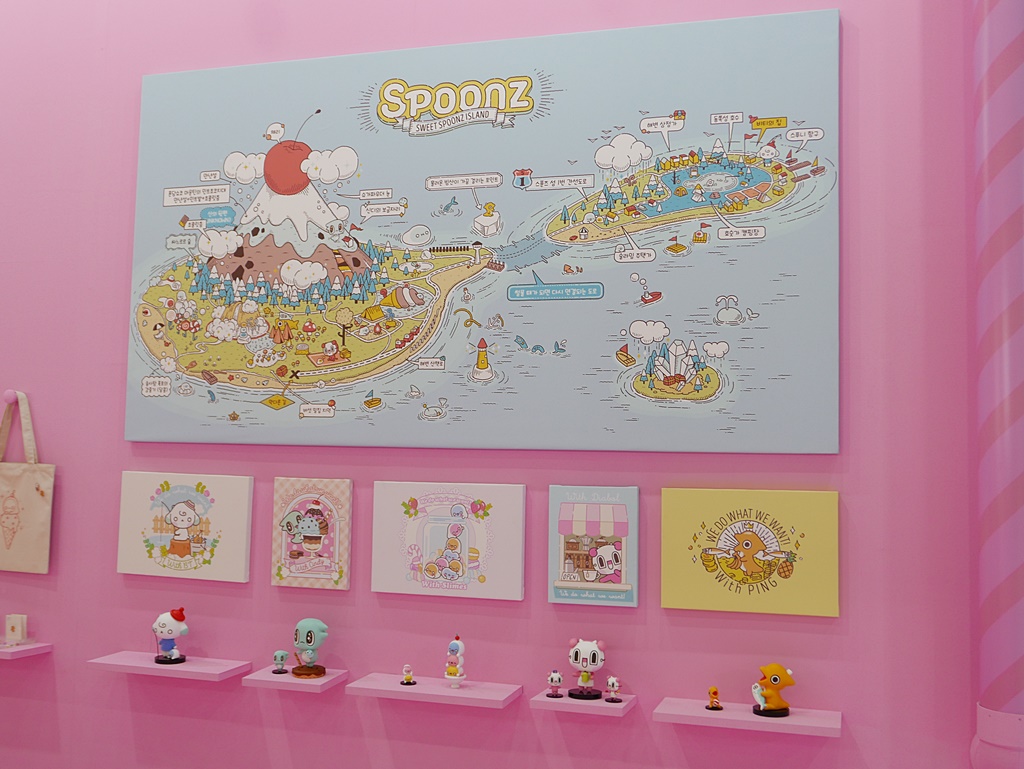 캐릭터의 대형 모형과 다양한 캐릭터 상품은 물론 국내 아트토이 작가인 쿨레인과 핸즈인팩토리가 제작한 피규어와 디오라마도 자리해 관람객의 눈길을 끌었다.