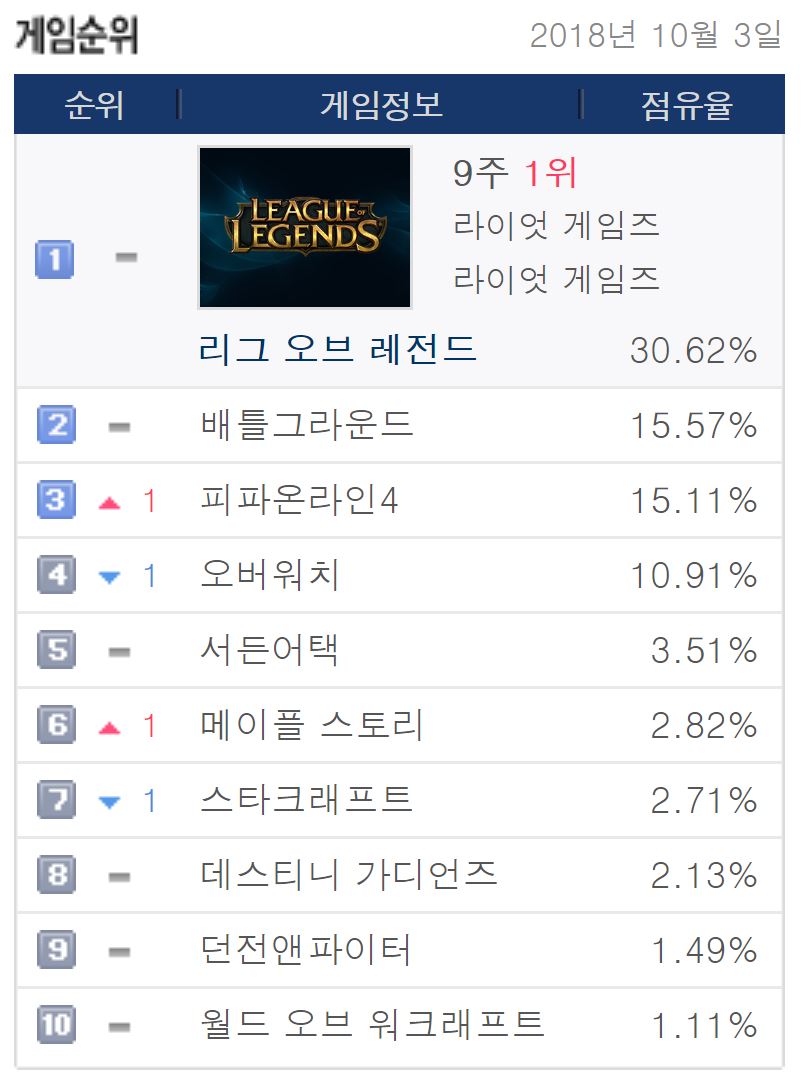 하지만 두 게임의 점유율을 바라보는 시선은 사뭇 다르다. 3일 기준 배그의 PC방 점유율은 15.57%. 여전히 좋은 수치지만 리그오브레전드를 제치고 30%가 넘는 PC방 점유율을 기록하며 1위 자리를 차지하고 있었다는 것을 생각하면 다소 아쉬움이 남는 기록이다.