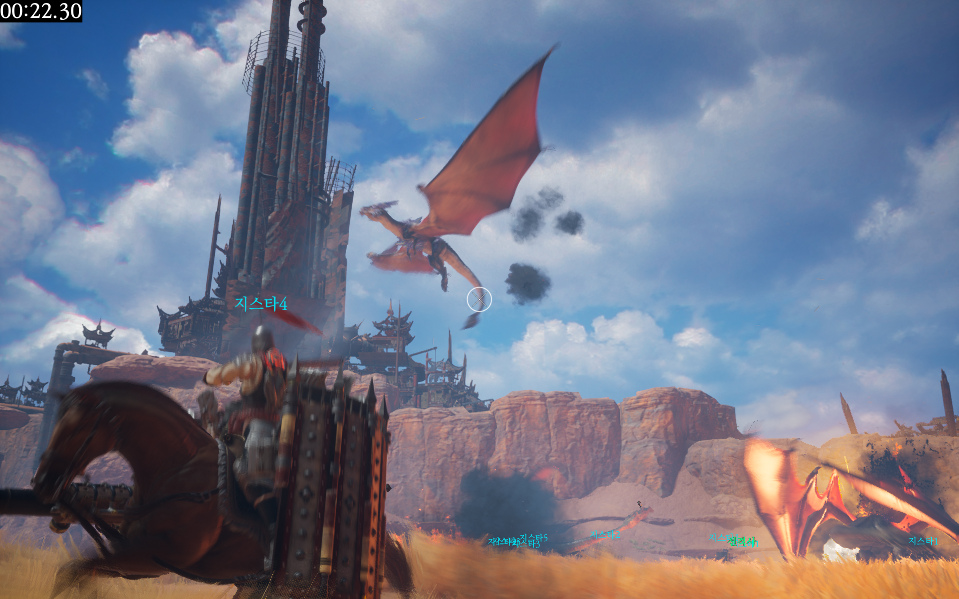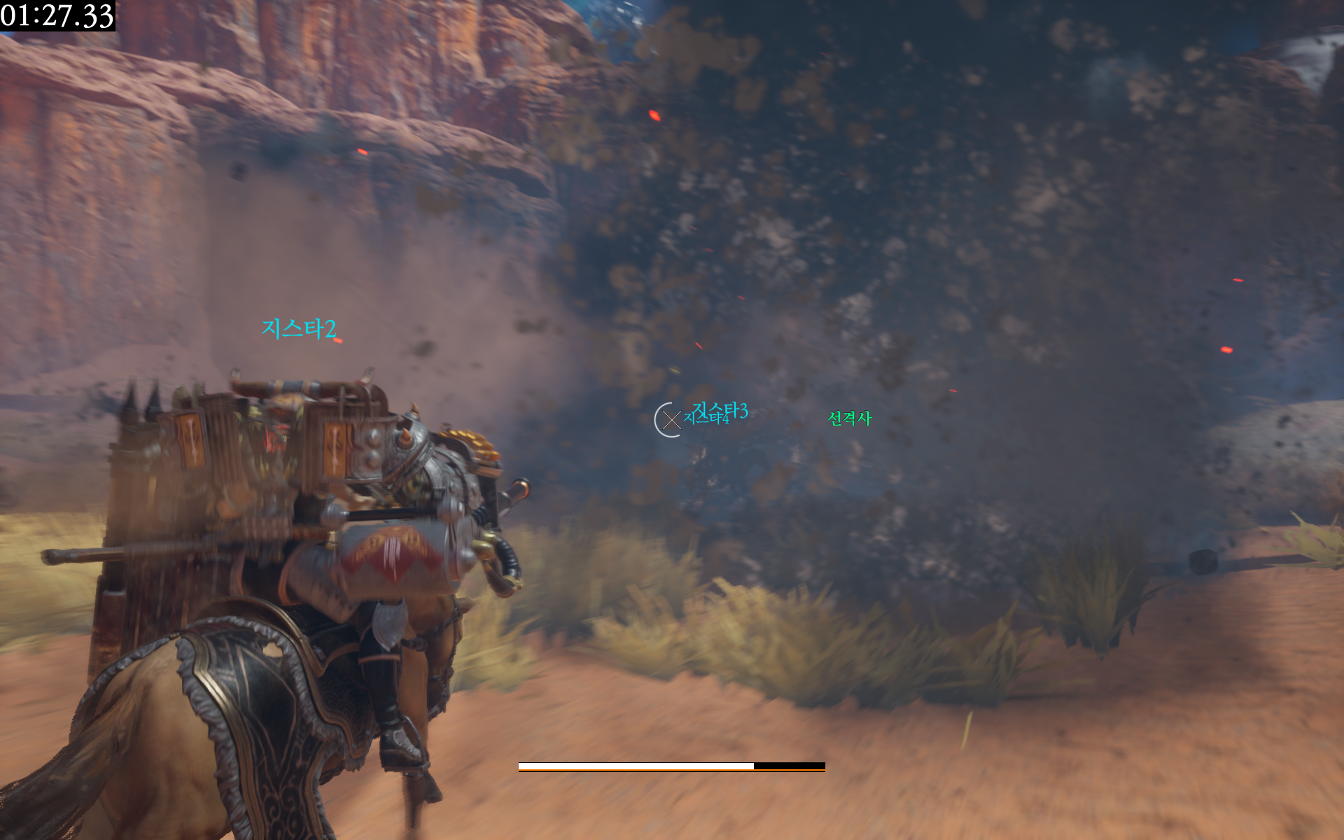 이번 시연에서는 게임 중반부터 사용할 수 있는 중화기가 주어졌다. 중화기로 발사해 용을 맞추는 타격감은 상당하며, 빠른 속도로 달리는 말위에서 전투가 벌어지기 때문에 박진감 또한 더해졌다.