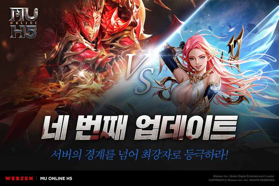 - 웹젠은 지난 2월 28일 뮤 온라인H5의 업데이트 점검 시간을 갖고, 여러 서버가 함께 모여 보스를 사냥하는 ‘통합 서버 보스’와 강력한 ‘4차 날개’, 캐릭터 전투력을 더욱 높일 수 있는 ‘미스릴’, ‘마법 반지’ 시스템 등을 추가하는 4차 업데이트를 진행했다고 밝혔다.