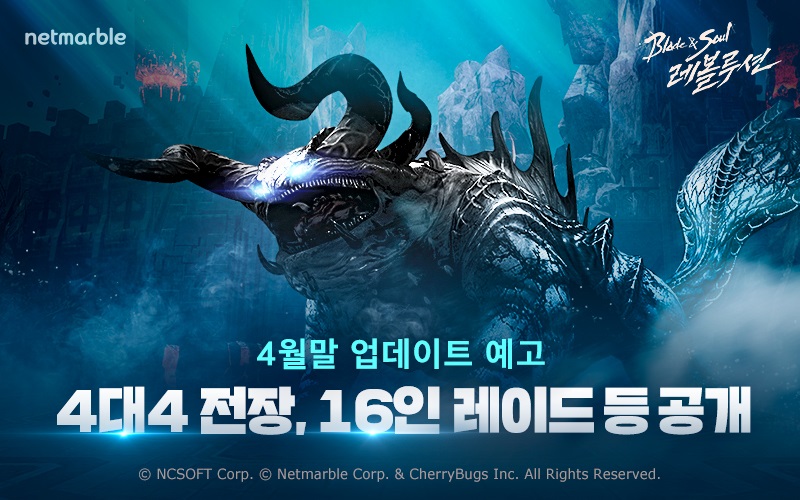 - 넷마블은 블레이드앤소울 레볼루션의 업데이트를 앞두고 티저 영상을 공개했다. 티저 영상에서는 4대 4 전장인 ‘용오름 계곡’과 백와룡이 등장하는 16인 레이드 ‘여명의 파천성도’ 등의 업데이트 내용을 미리 확인할 수 있다.