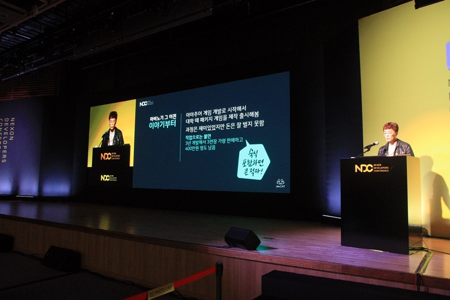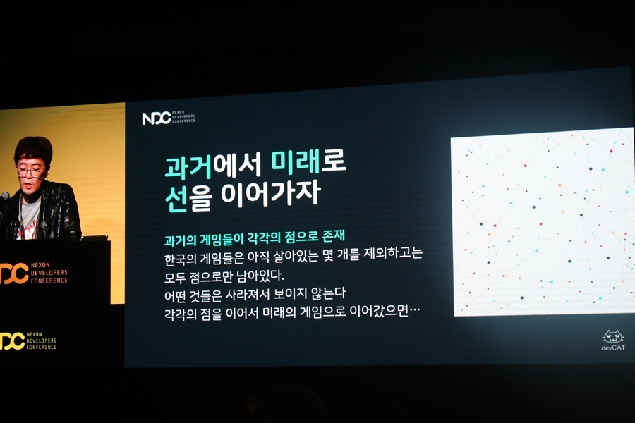 24일, 경기도 성남시 넥슨 판교 사옥에서 열린 넥슨 개발자 컨퍼런스(NDC 2019)의 키노트 강연에서, 데브캣 스튜디오 김동건 프로듀서는 위와 같은 말로 강연을 시작했다. 주제는 ‘할머니가 들려주신 마비노기 개발 전설’. 마비노기의 개발 과정을 통해 현 개발자들이 지녀야 할 자세에 대해 김 프로듀서는 설명했다.