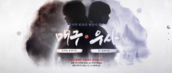 펄어비스는 12월 10일, 검은사막 모바일 오프라인 간담회 ‘2022 칼페온 연회’를 과천 신사옥 ‘홈 원’에서 개최한다. 현장에서는 검은사막 IP 최초의 쌍둥이 클래스 ‘매구’와 ‘우사’가 공개될 예정이다. 해당 클래스는 한날한시에 태어난 쌍둥이 자매로, 서로 다른 방식을 통해 도를 쌓는다는 콘셉트를 갖고 있다.