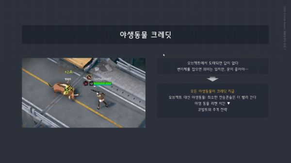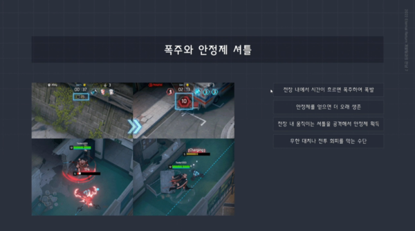님블뉴런의 대표작, ‘이터널 리턴’의 시즌8 방향성을 발표하는 자리는 어느 때보다 무거운 분위기로 시작됐다. 최근 유저로부터 커피 트럭을 받긴 했으나, 인게임을 둘러싼 상황과 전망이 그리 밝지 많은 않은 상황. 진행을 맡은 이리1 디렉터는 현재 게임이 처한 문제점을 짚어나가기 시작했다.
