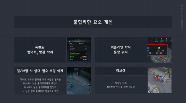 랭크 대전에서 MMR이 낮은 유저에게 제압당했을 때, 손해가 너무 크다는 피드백에 대해서도 답변했다. 이제 MMR은 어떤 상대를 제압했는지와 무관하게, 모든 유저들의 평균 점수로 일단 먼저 계산된다. 즉 유독 MMR이 낮은 유저에게 제압당하더라도 매치 평균 기준으로 처리되는 것.