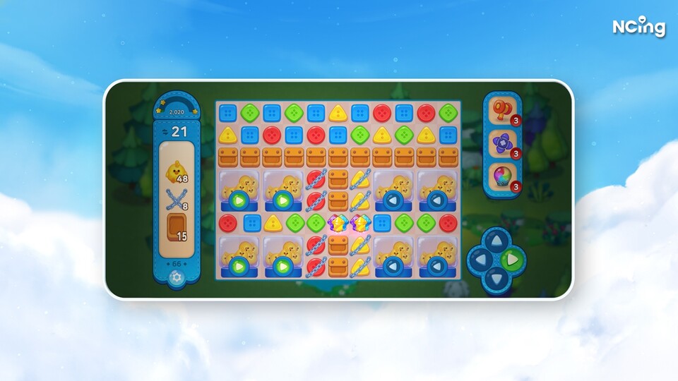 PUZZUP은 엔씨가 글로벌 퍼즐 게임 시장을 목표로 개발 중인 3매치 캐주얼 퍼즐 장르다. 3개 이상의 블록을 맞춰 퍼즐을 푸는 대중적인 3매치 방식에 이용자가 직접 블록의 진행 방향을 바꿀 수 있는 ‘방향키’ 요소로 차별성과 재미를 더했다.
