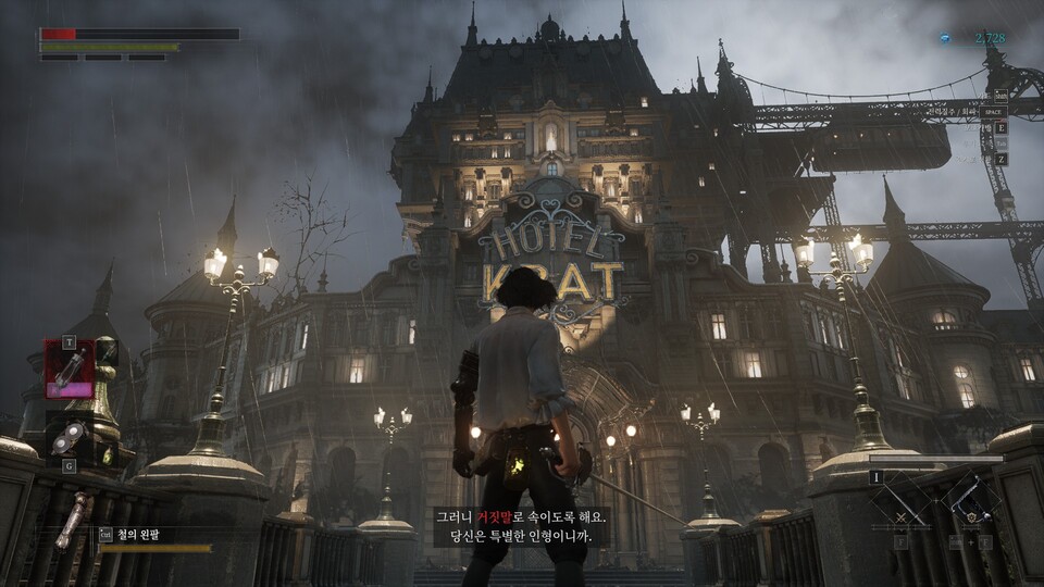 답변에 따르면, 크라트 호텔은 모든 이야기의 출발점이자 중심점이다. 거점 이동 화면에서 배치가 약간 다른 것도 의도했으며, 호텔 등장 인물인 소피아가 들려주는 이야기가 매우 중요할 것이라는 힌트도 나왔다. 내러티브를 적절하게 풀어내는 방법을 고민한 결과 만들어진 구조라는 것이다.