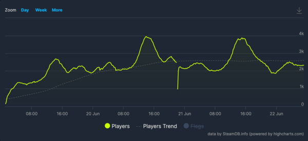 현재도 협정 세계시(UTC) 기준 오후 2시에는 3,800명대의 동시 접속자 수를 기록하며 순항 중이다.