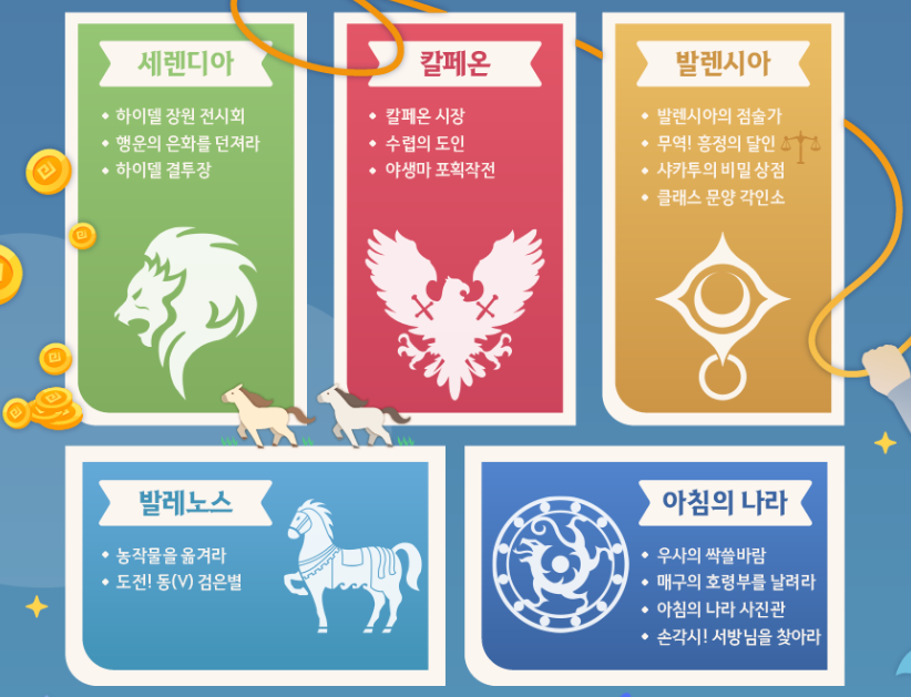 11시부터 입장 가능하며, 오후 4시까지 자유롭게 내부 이벤트를 체험하면서 축제를 즐길 수 있다. 이벤트 존은 아침의 나라를 비롯해 세렌디아, 칼페온, 발렌시아 등 검은사막을 대표하는 5개 지역 테마로 나누어 미니게임과 전시가 운영된다.