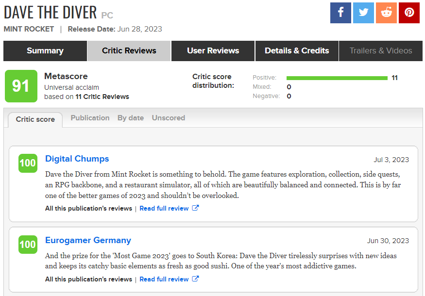- '데이브 더 다이버', 메타크리틱 ‘머스트 플레이’ 배지 달았다