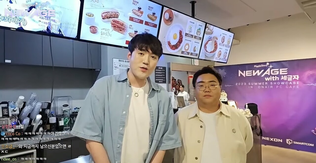 지난 29일, 메이플스토리 강원기 디렉터는 인플루언서 ‘세글자’가 운영하는 ‘글자네 PC방’을 방문했다. 10일 쇼케이스 직후에 이어 두 번째 방문이었다. 이날 강 디렉터는 세글자의 방송에 참여해 농담처럼 언급했던 글자네 PC방과의 컬래버 이벤트가 실제로 진행된 것이다.