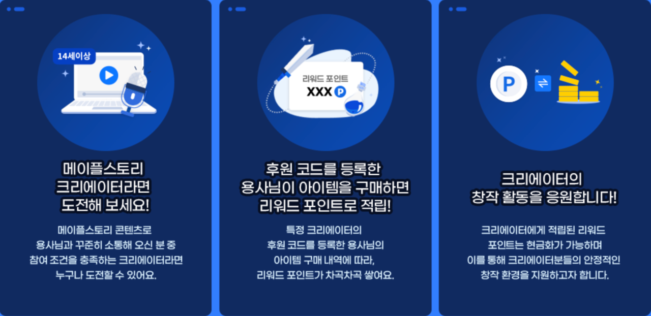 - "후원하고 보상 받으세요" 메이플, 크리에이터 지원 프로그램 공개