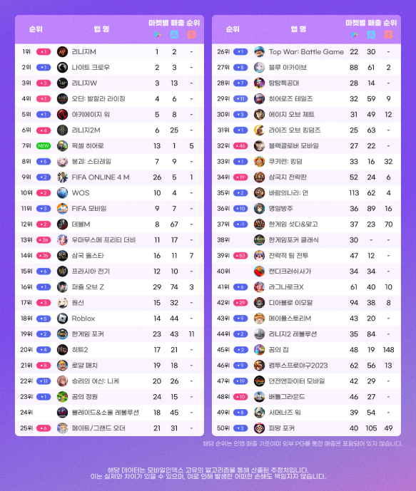 넥슨 '메이플스토리M'의 급상승도 주목할 포인트다. 순위권 바깥에서 단숨에 26위로 뛰어올랐다. 추정 MAU는 36만 명으로, 두 배 가까이 오른 숫자다. 6월 헤이스트 이벤트와 신규 캐릭터 호영 추가, 여름 쇼케이스 등 준비한 것들이 연이어 큰 반응을 얻었다. PC와 모바일 양쪽에서 동시에 '메이플스토리'가 최고의 달을 보낸 현상도 흥미롭다.