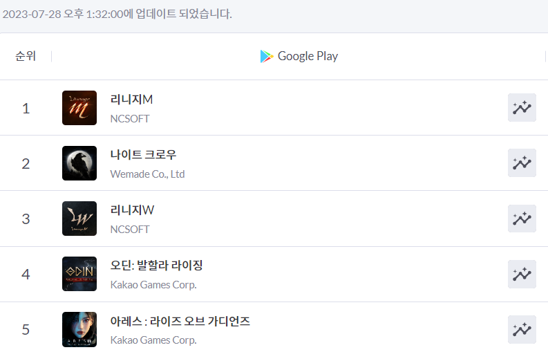 그 결과 구글 매출에 처음 집계되는 27일 기준 40위로 진입했으며, 28일 현재 구글 실시간 매출 5위까지 오르며 빠른 속도로 선두권을 위협하는 구도를 그리고 있다.