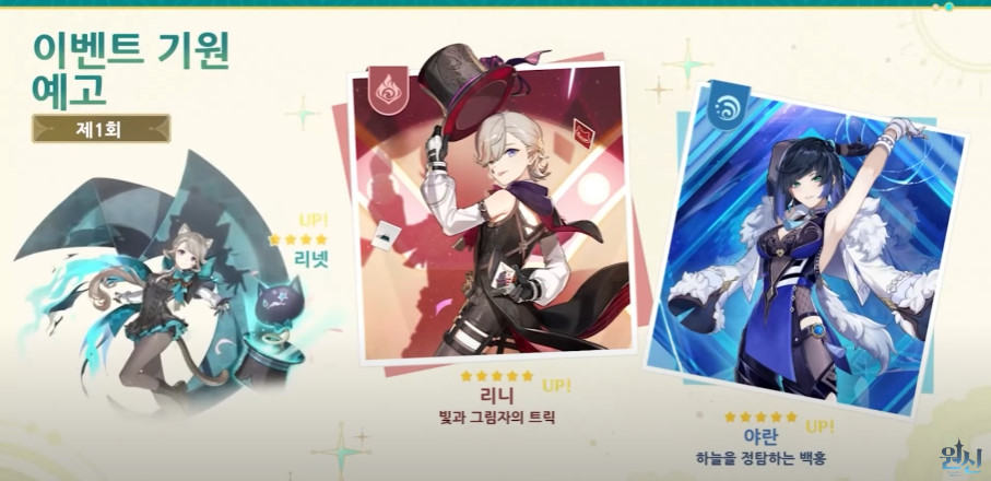 4.0 첫 기원 리니와 야란, 4성 캐릭터 리넷도 등장