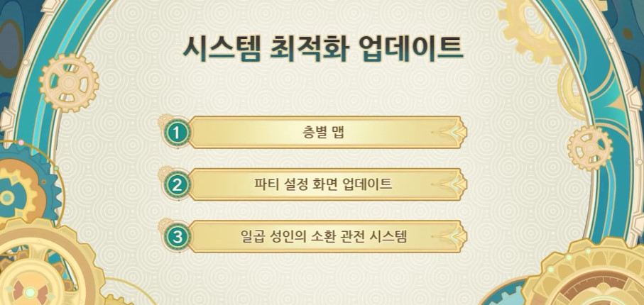 파티 설정 화면도 개선된다. 캐릭터마다 파티 가입 효과, 위치 변경 효과를 새로 제작해 자신만의 고유 모션을 가진다. 파티 내 순서를 변경할 때도 마찬가지며, 배경도 여러 종류를 추가해 유저 장소에 따라 배경이 달라진다.