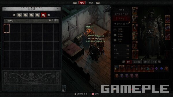 창고 탭이 하나 더 추가됐다. 추가 창고 탭은 40만 골드를 소모하며 이제 5개의 창고 탭을 이용할 수 있다. 악몽 던전 인장 사용 후에 보이지 않았던 던전 위상 보상을 지도에서 곧바로 확인할 수 있다. 그 밖에 시즌 축복 ‘흥정의 항아리’가 마법 부여 비용을 증가시키던 버그도 수정됐다.