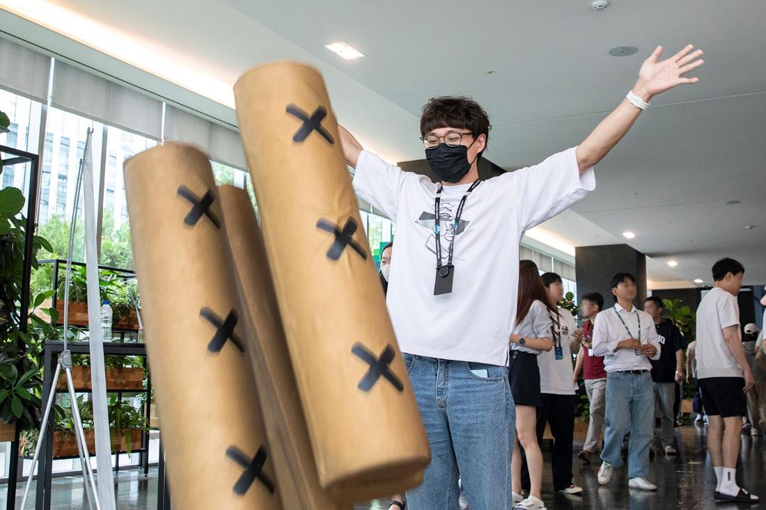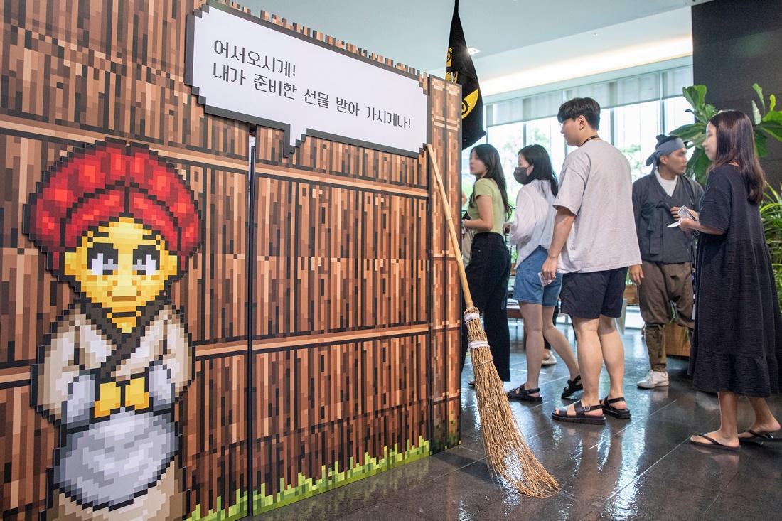 넥슨은 지난 21일부터 이틀간 직원들을 위해 바람의 나라를 테마로 한 행사를 진행했다. 사옥 내 1층에는 바람의 나라 속 주막을 연상시키는 행사장이 마련됐으며, 주막 앞에선 ‘왈숙네 주모’가 방문객들을 반겼다.