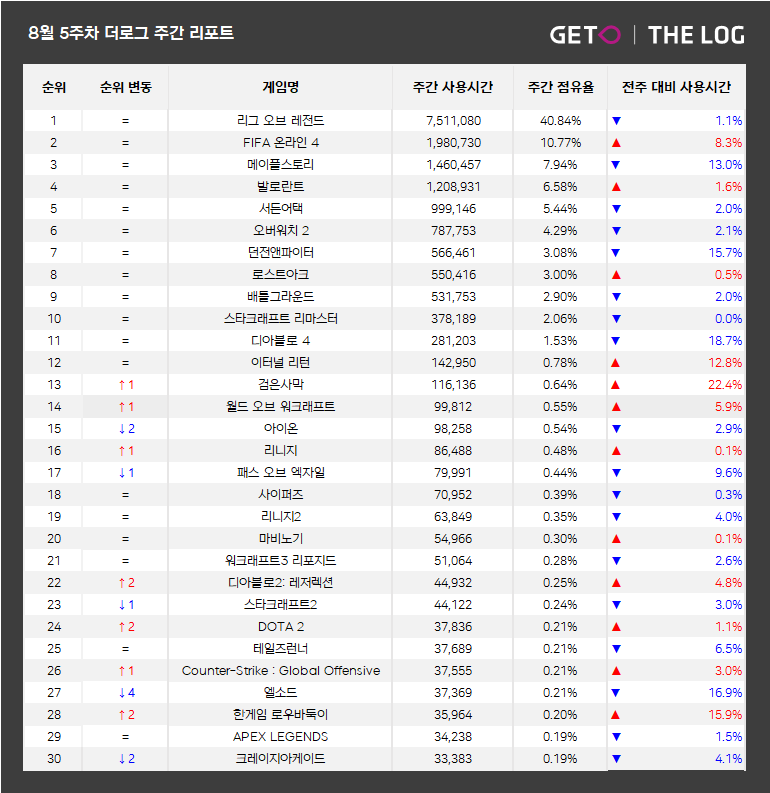 정식 출시, PC방 이벤트 확대 등으로 꾸준하게 점유율 누적
