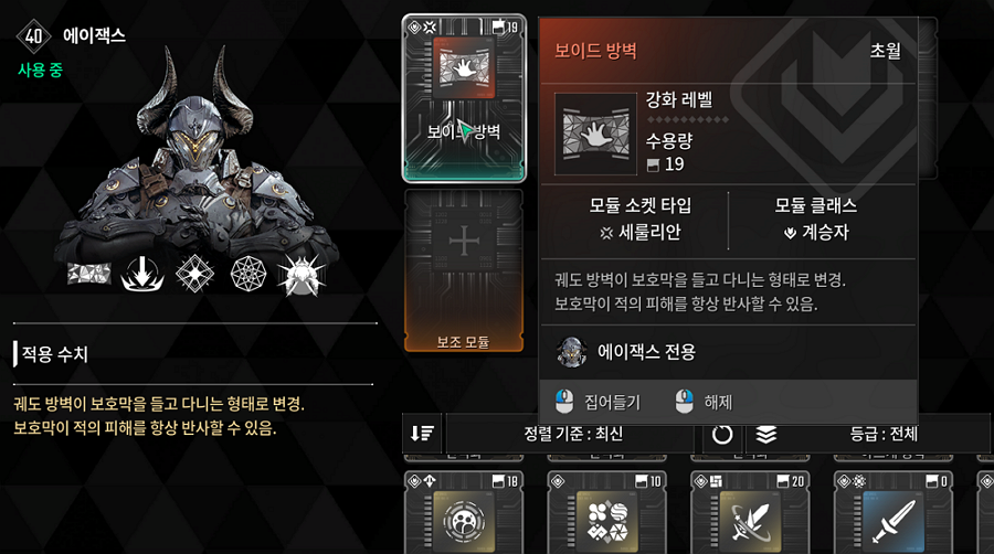 계승자와 무기 능력치 강화하는 역할의 모듈, 합성과 강화까지 가능해