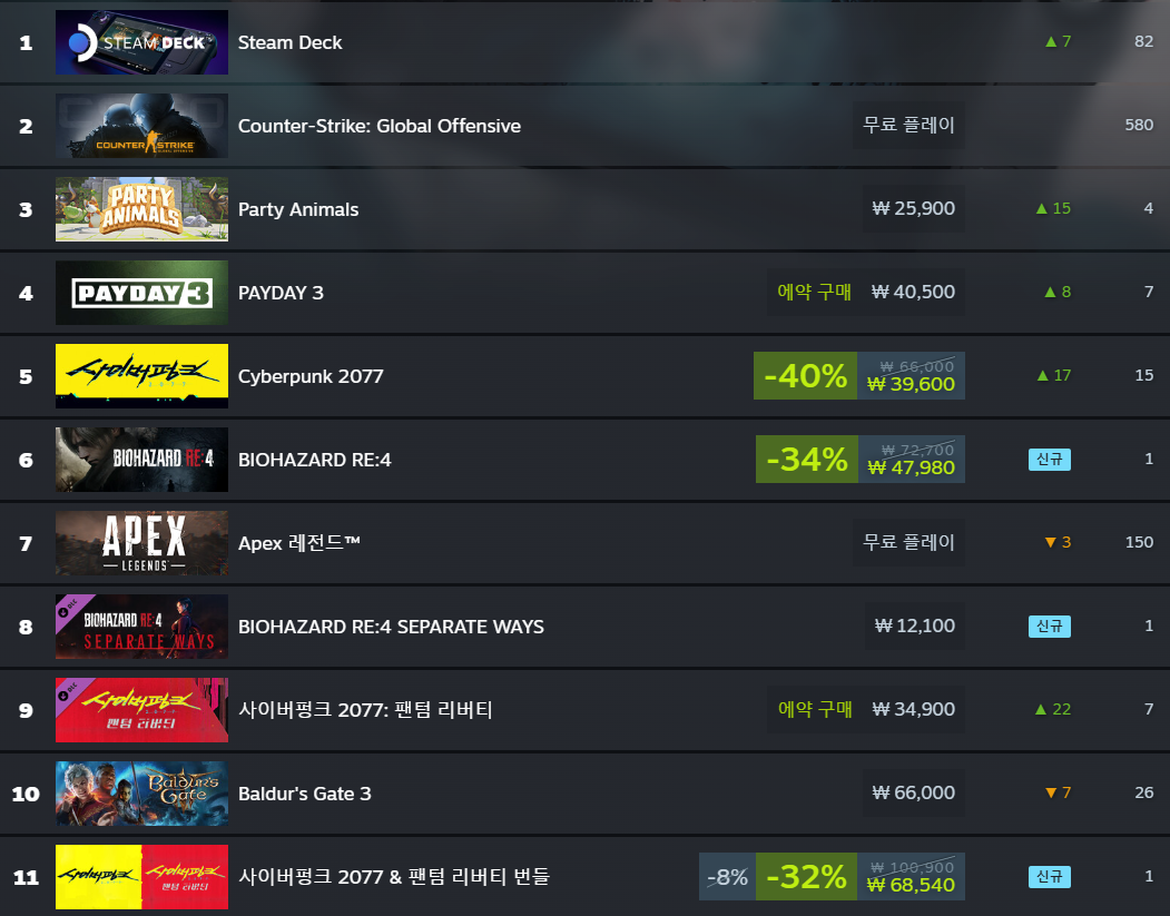 CDPR은 신규 확장팩 ‘팬텀 리버티’의 출시를 앞두고 오늘 21일 2.0 업데이트를 무료로 배포하며 유저 끌어안기에 돌입했다. 실제로 오후 5시 기준 스팀 글로벌 인기 차트 5위에 ‘사이버펑크 2077’이 9위에 ‘팬텀 리버티’, 11위에 번들이 자리를 잡으면서 과거 ‘사이버펑크’ 신드롬을 재현해 내는 모습이다.