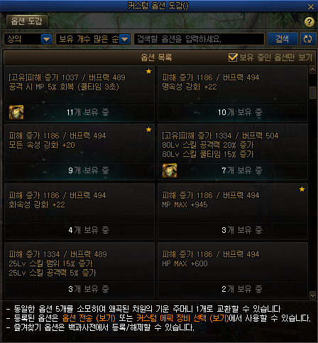 물론 최근 업데이트로 중요한 옵션을 따로 표시하는 기능이 추가되긴 했다. 하지만 던파에 있는 여러 직업이 각기 다른 세팅을 활용하기 때문에 옵션의 가치는 모두에게 다르게 적용된다. 결국 제대로 커스텀 장비를 활용하기 위해선 옵션 도감을 뒤져가며 현재 자신의 세팅에 맞는 최적 옵션을 찾은 뒤, 눈에 불을 켜고 최적 옵션을 가진 장비를 모으는 방법밖에 없다. 그게 아니면 극악의 확률도 얻을 수 있는 ‘미스트 기어’를 찾는 수밖에.