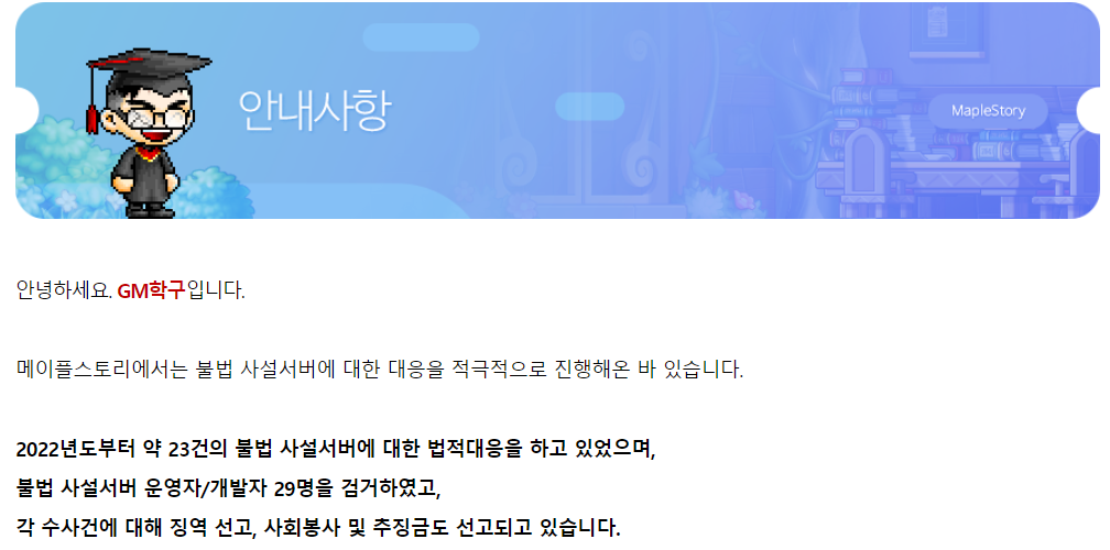 [게임플] 넥슨이 ‘메이플스토리’의 불법 사설 서버 운영 및 가담자들에게 공격적인 법적 대응을 예고했다.