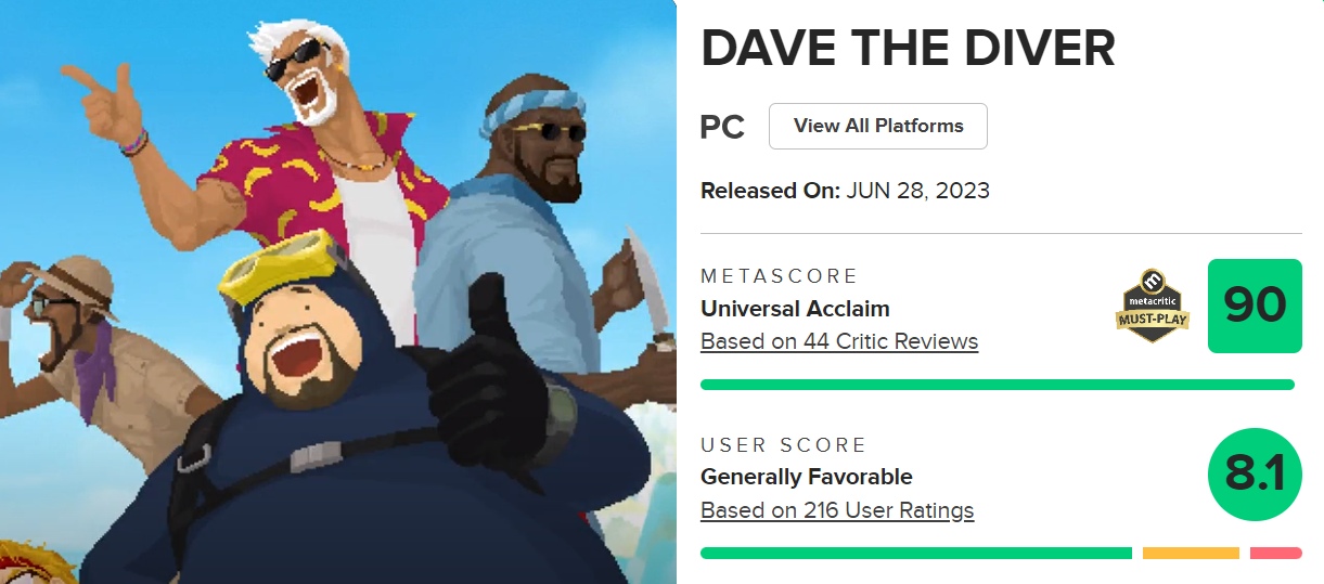 올해는 유독 한국 게임 중 좋은 평가를 받은 수작이 몰려나왔다. 그 속에서도 '데이브'의 평가는 차원이 다르다. 올해를 넘어 역대 한국 게임 중 전 세계에서 이렇게 극찬을 받은 게임은 없었다.