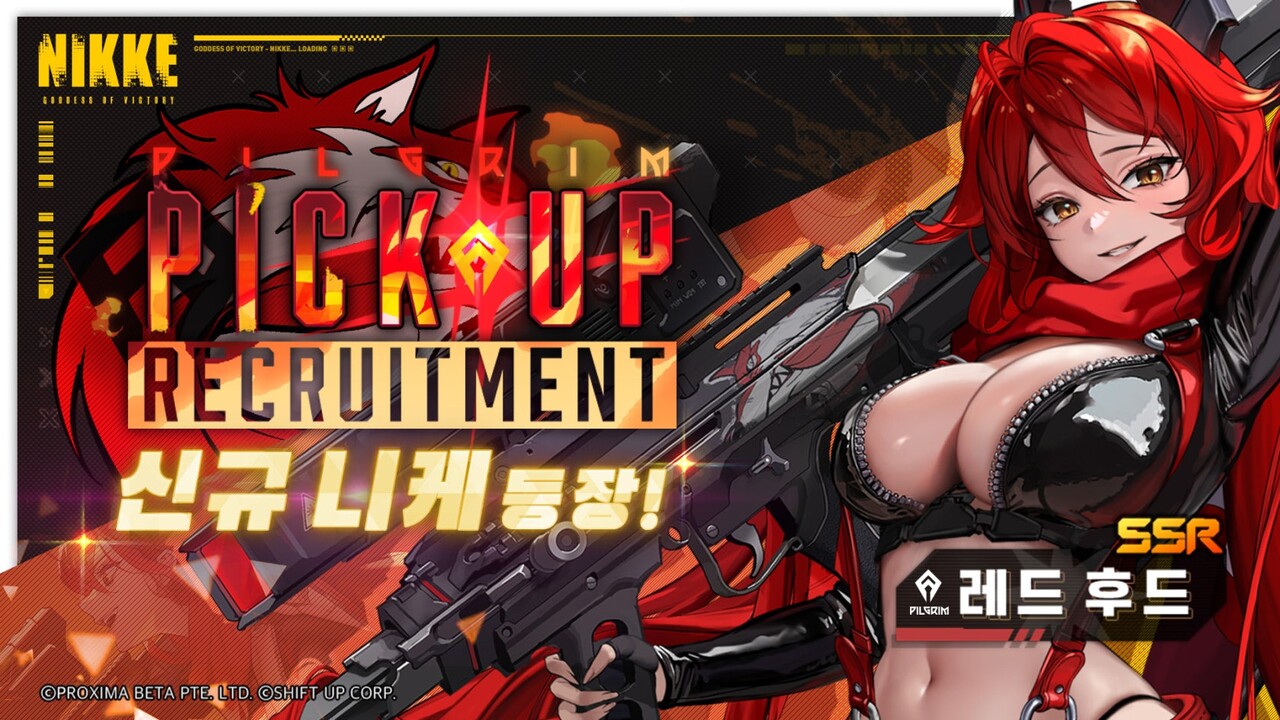 먼저 관심을 얻은 것은 1주년 업데이트다. 신규 니케로 갓데스 스쿼드의 붉은 늑대 '레드후드'가 합류한다. 필그림이며, 화력형 타입에 저격소총을 사용한다. 게임 최초로 모든 버스트 단계에서 버스트 스킬이 사용되어 포지션에 구애받지 않고 편성이 가능하다.