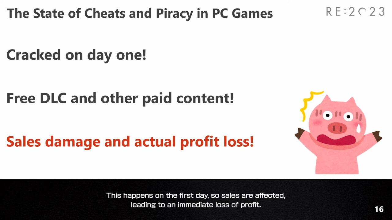 또한 캡콤은 영상에서 PC 게임 치트의 불법 복제로 인한 영향을 소개했다. 악성 모드로 인한 명예 훼손을 예로 들며 “공공질서 및 미풍양속에 위반되는 모드를 무단으로 배포해 제품의 이미지가 훼손되고 모드를 공식 구현으로 오인할 수 있어 게임의 나쁜 평판을 초래할 수 있다”고 말했다.