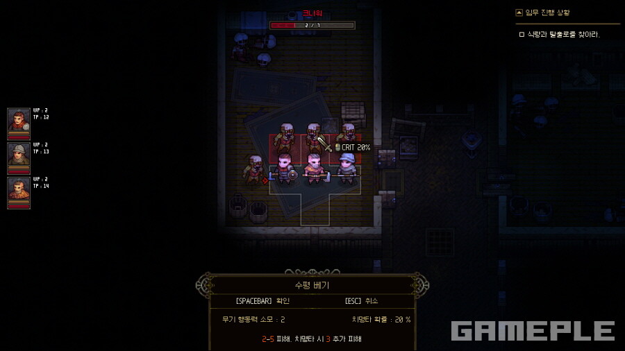 정극민: 영감을 가장 직접적으로 준 게임은 앞서 말씀드린 ‘좀비사이드’였고, 이후 개발 과정에서 턴제 장르의 게임들을 정말 다양하게 해 보면서 장단점을 분석하고, 플레이어로서 어떤 부분이 마음에 들고 어떤 부분은 그렇지 않은지 오랫동안 논의를 거쳤다.