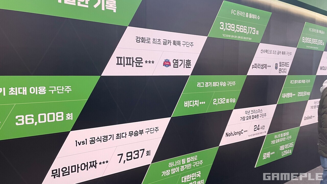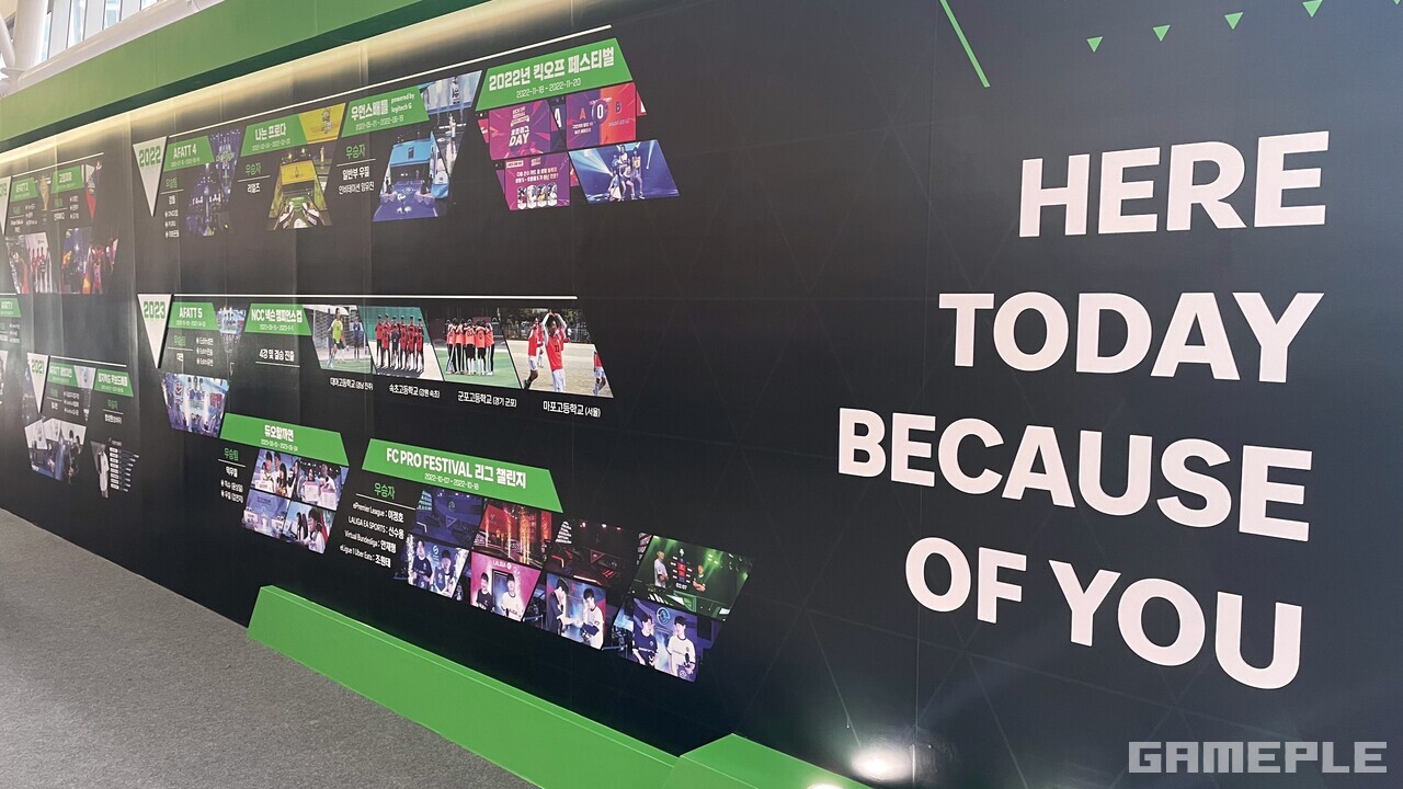 FC 온라인 유저들이 세운 특별한 기록들을 찬찬히 따라가다 보니 어느새 경기장 입구에 다다랐다. 입구에서부터 느껴지는 강렬한 원색에 향연에 홀리듯 들어간 경기장엔 초록빛 응원봉이 관중석을 수놓고 있었다. 2,000석 규모의 행사장이 유저들로 가득 찬 것이다.