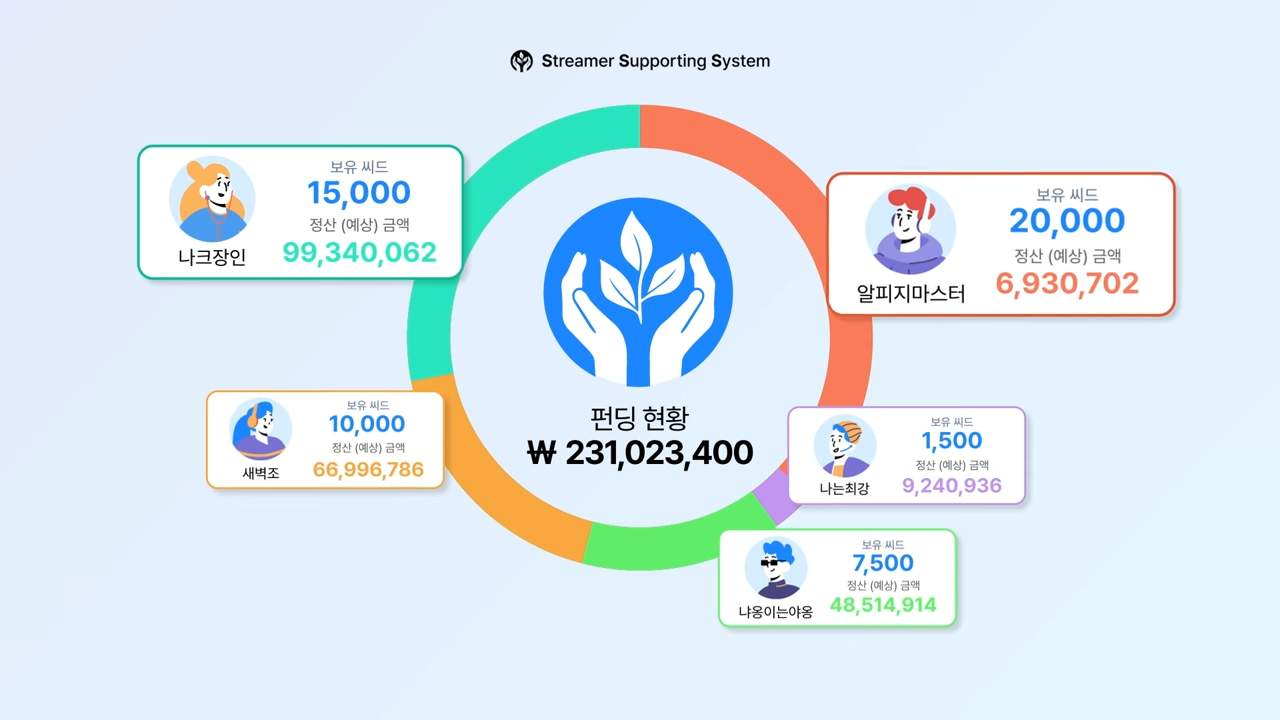 SSS는 ‘SSS 펀드’라는 자체적인 금융 시스템을 활용한다. 유저들이 게임 내에서 유료 상품을 구매하면 그 금액에 비례해 ‘씨드’라는 자체 화폐를 받는다. 유저는 씨드를 크리에이터에게 후원하고, 크리에이터는 그것을 후원금으로 환전해서 수익을 얻는 방식이다.