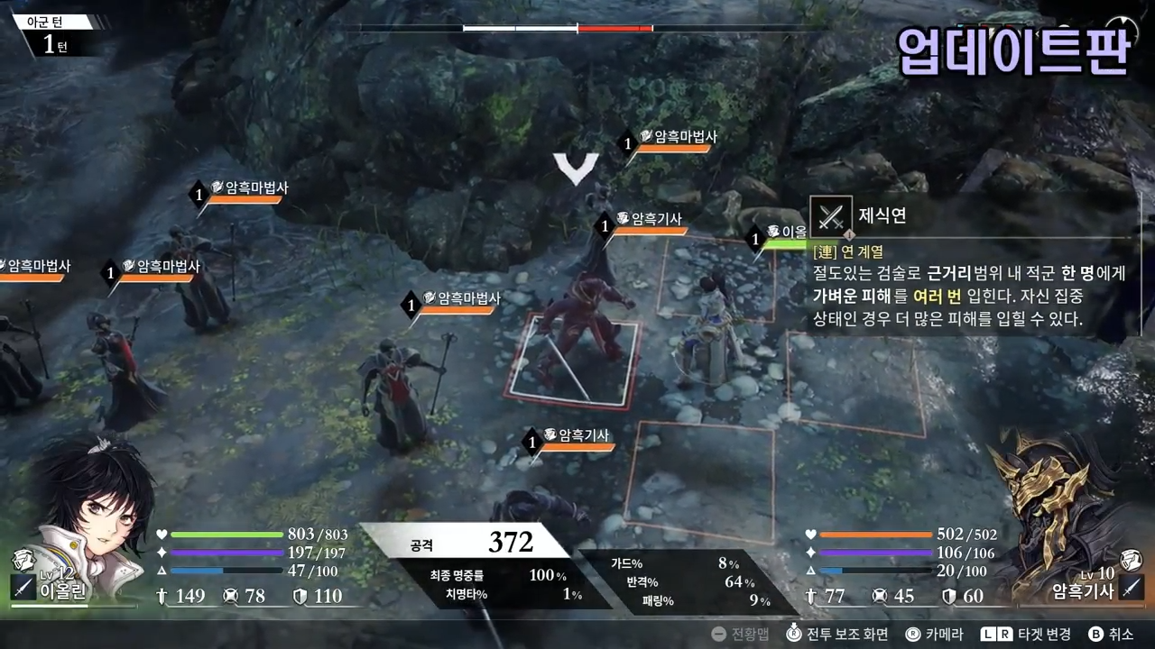 또한 출시 이후 예정됐던 패치도 우선순위를 끌어올려 데이원 패치에 포함됐다고 전했다. 필요한 커맨드가 메인 화면에서 다 보이도록 하고, 전투 가속 모드도 1.7배속 정도에서 기본 상태가 1.6배, 가속은 2배속까지 올라가도록 했다.