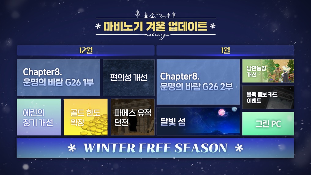 12월~1월 파메스 유적, 달빛 섬, 낭만농장 개선 순차적 시행