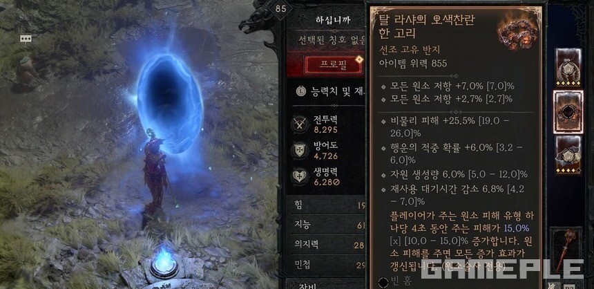 반지는 기본 옵션이 뛰어난 ‘탈라샤의 오색 찬란한 고리’를 사용한다. 재사용 대기 시간 감소와 비물리 피해 등 모든 옵션이 빼놓을 것이 없으며 곱연산으로 피해량이 증가하는 고유 효과 역시 DPS를 위한 좋은 선택지다.