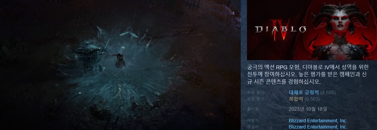 ‘디아블로4’는 10월 스팀 출시 직후 약 50%의 유저만이 긍정적 평가를 남기며 유저 평가 ‘복합적’을 기록했는데 오늘 18일 기준 최근 30일 동안 유저 평가 4,728건 중 79%가 긍정적 평가를 남겼다. 최근 평가 ‘대체로 긍정적’으로 반등한 모습이다. 리뷰가 쌓이고 시간이 지날수록 유저 평가가 반등하는 추세다.