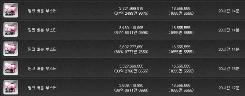 그런데 최근 경매장에서 200개가 넘는 수량의 핑크 버블 부스터가 한 묶음으로 판매됐다. 앞서 말했듯 사냥을 통해 획득한 부스터는 1회만 거래할 수 있어 계정 내에서 모은 부스터를 하나로 모아서 팔 수도 없고, 구매한 부스터를 되팔 수도 없다. 이는 한 시간에 2개도 얻기 힘든 핑크 버블 부스터를 한 캐릭터로 200개 넘게 획득했다는 것으로, 정상적인 플레이로는 보기가 어려운 수준이다.