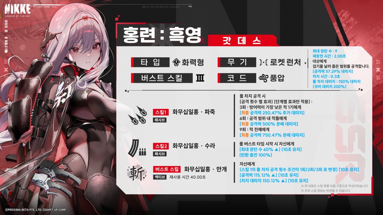 물론 '흑련'이 주목을 받은 핵심 이유는 스토리가 아니다. 성능이다. 현재 최강 캐릭터인 모더니아 및 레드 후드와 동급, 혹은 조건에 따라 이들을 뛰어넘는 활약도 가능하다.