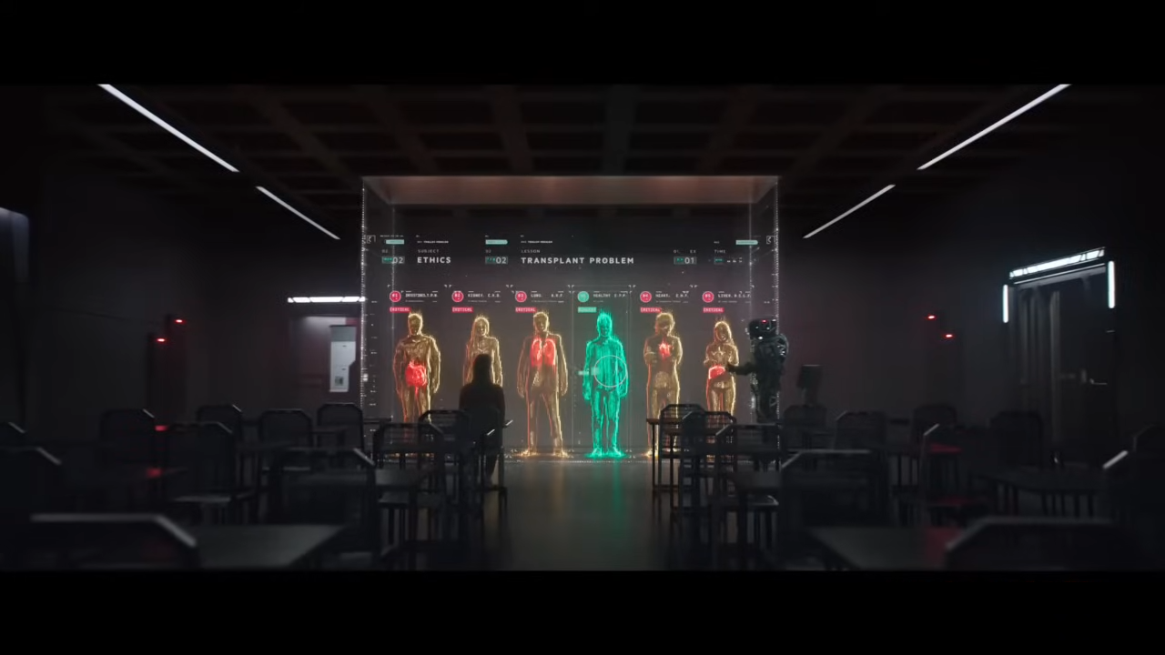 영화는 공리주의의 실현을 디스토피아로 묘사한다. 이기심이 낳은 비극으로 종말을 맞은 인류를 대신해 인공지능이 새로운 인류 문명의 재건을 계획한다. 인간을 뛰어넘은 초지능으로 만물의 가치를 정확하게 매길 수 있으며, 관계로부터 자유로운 인공지능이야말로 공리주의적 판단이 가능한 주체다.