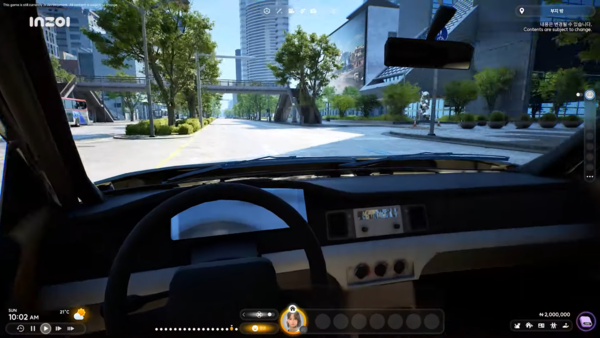 첫 번째 정보 공개는 '자동차'였다. 유저들의 문의가 가장 많았던 분야다. 'GTA'와 같은 형태는 아니지만, 인생 시뮬레이션을 만드는 방향으로서 자동차를 사용하고 있다. 차량 탑승을 선택한 뒤, 차 안에서 1인칭으로 내부를 둘러볼 수 있는 기능도 제공한다.