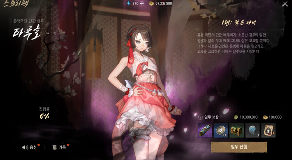 유랑극단 간판 배우 '타루호' 스토리팩은 또다시 이서 시점에서 연결된다. 주인공 모험가가 유랑극단 신입으로 등장하고, 타루호의 새로운 인연 스토리를 다룬 내면 묘사가 흥미롭다. 원거리 공격으로 4개 꽃잎을 중첩시켜 새로운 스킬을 활성화하는 액션 역시 독특하다.