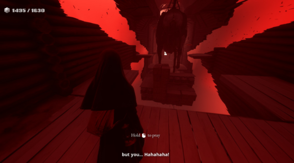 그럼에도 불구하고 개발진은 이를 만들어뒀다. 이유는 종국에 이르러서 확인되는데 개발진은 플레이어가 악마로 변해 거울 속 자신의 모습을 보도록 하고 신앙 혹은 포인트로 대변되는 ‘성유물’을 들고 자위하듯 흔들어대도록 설계했다.