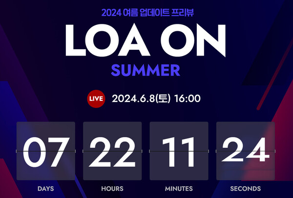 로스트아크는 31일, 공식 홈페이지에 '로아온 썸머' 카운트다운 페이지를 오픈했다. 개최 시기는 6월 8일 오후 4시이며, 오프라인 초청 없이 유튜브 채널에서 공식 생중계된다.