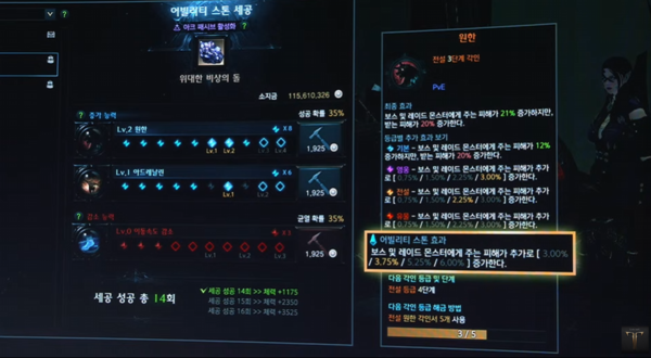 기존의 좋은 돌을 깎은 유저들은 충분히 그 돌을 그대로 쓸 수 있다. 어빌리티 스톤 계승 시 소모되는 골드는 업그레이드 단계에 따라 점감된다.