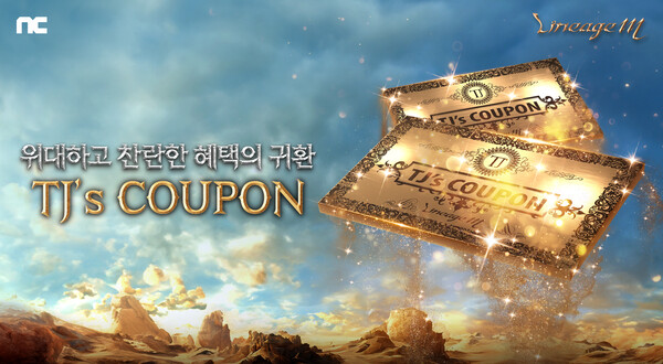 리니지 시리즈의 상징인 TJ 쿠폰 역시 준비됐다. 6월 19일 정기점검이 끝난 뒤 7월 3일 정기점검 전까지 상점에서 'TJ 쿠폰 선물 상자'를 아데나로 구매 가능하다. 이를 사용하면 'TJ 쿠폰 - 일반 장비 복구', 'TJ 쿠폰 - 스킬 합성'을 하나씩 총 2종 얻는다.