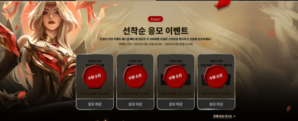 현재는 무작위 응모 이벤트에만 참여할 수 있다. 해당 이벤트에 참가하려면 전설의 전당 패스 100레벨을 달성해야한다.