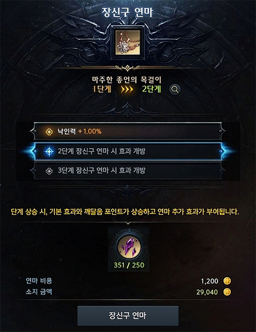이제 새로운 시스템 장신구 연마를 통해 추가 효과를 부여할 수 있다. 장신구는 최대 3단계까지 연마할 수 있으며, 연마 시 다양한 효과 중 하나가 일정 확률로 부여된다.