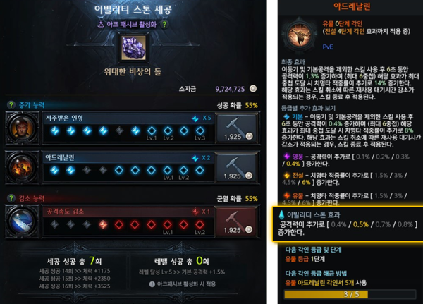 신규 세공 보너스 효과는 기본 공격력 1.5% 증가다. 기존 세공이 완료된 티어 3 어빌리티 스톤에도 적용되지만, 아크 패시브 활성화 상태일 때에만 발동된다.